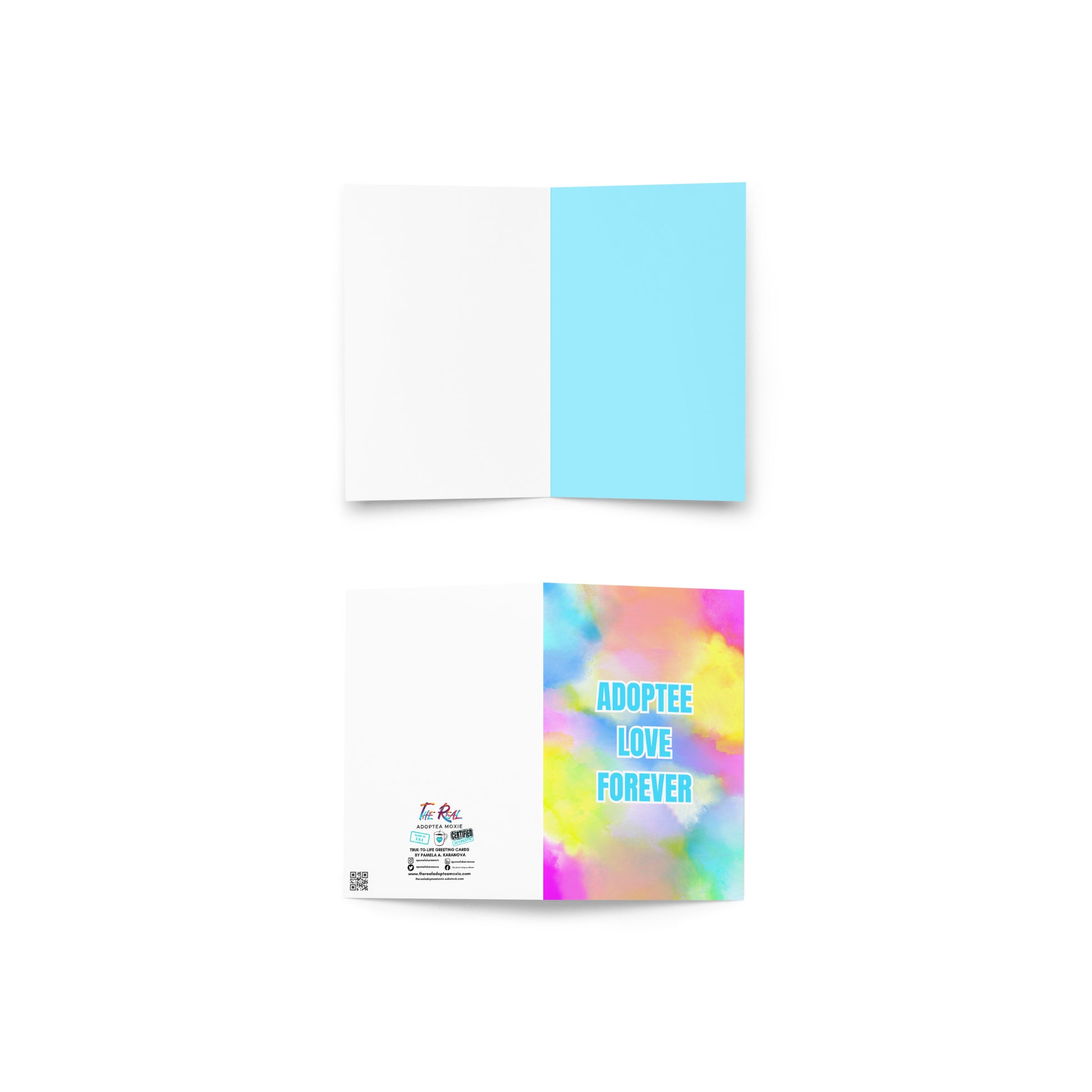 "Adoptee Love Forever" Greeting Card: Each item becomes a bold and unique statement, and every true-to-life greeting card tells a story.