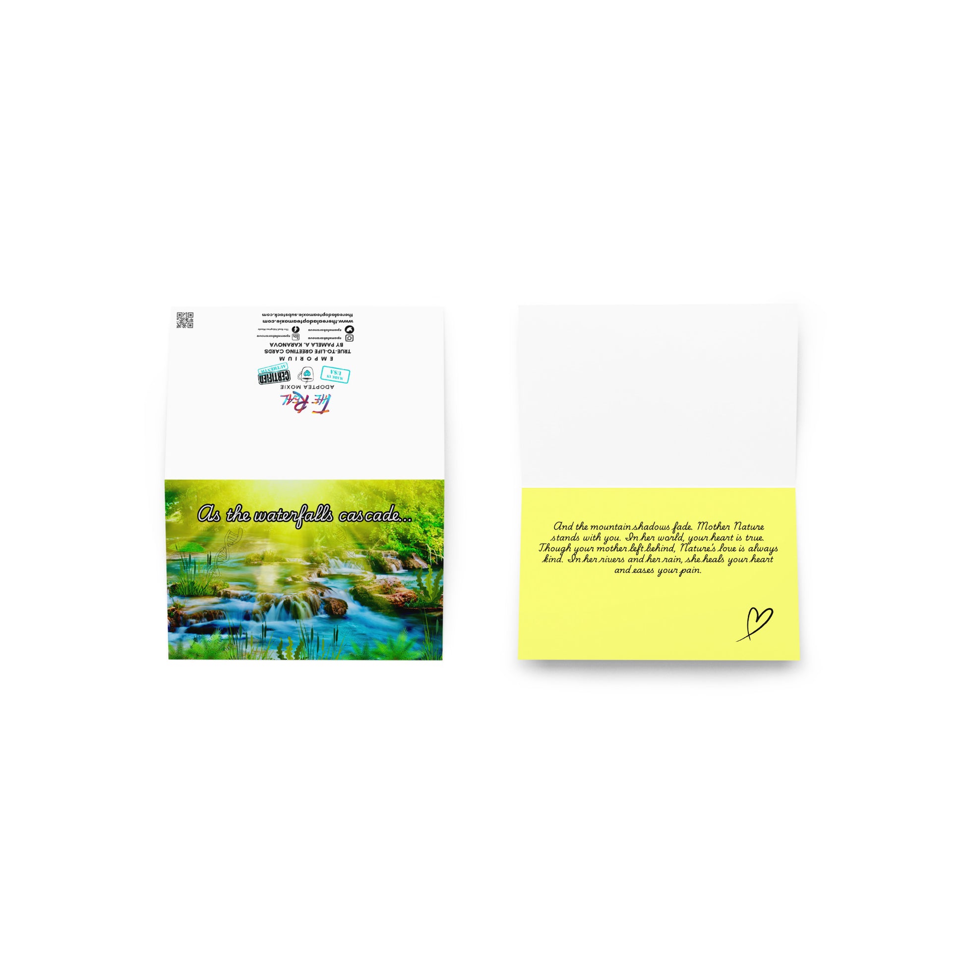 Inside Card: "And the mountain shadows fade. Mother Nature stands with you. In her world, your heart is true. Though your mother left behind, Nature's love is always kind. In her rivers and her rain, she heals your heart and eases your pain."