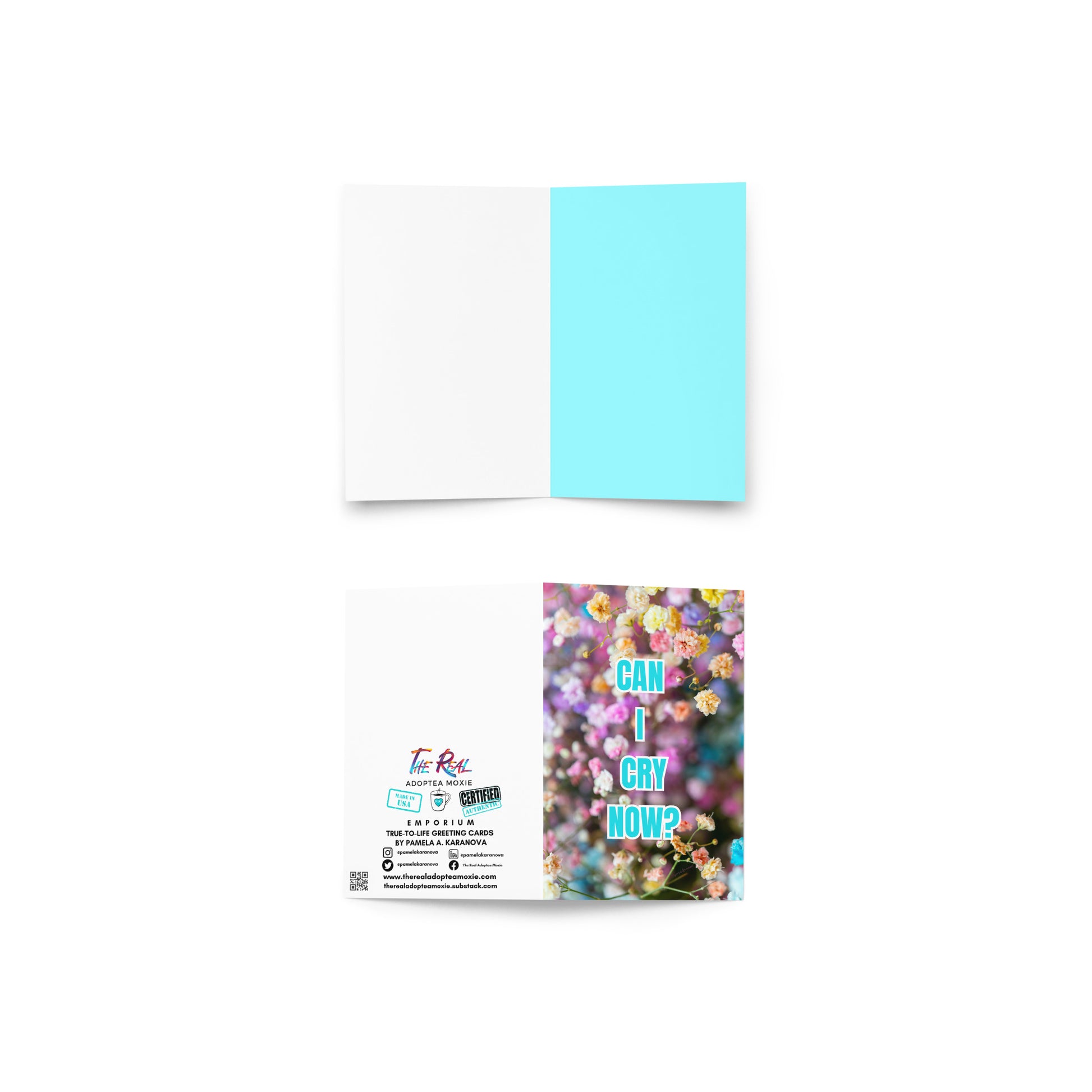 Disclaimer: The Real Adoptea Moxie True-to-Life Greeting Card line is protected by copyright laws. Any unauthorized reproduction, distribution, or modification of the content shared on this website without the explicit written consent of the copyright holder is strictly prohibited. This includes both personal and commercial use. All rights reserved. Thank you for respecting the creative work of Pamela A. Karanova and ensuring its rightful protection.