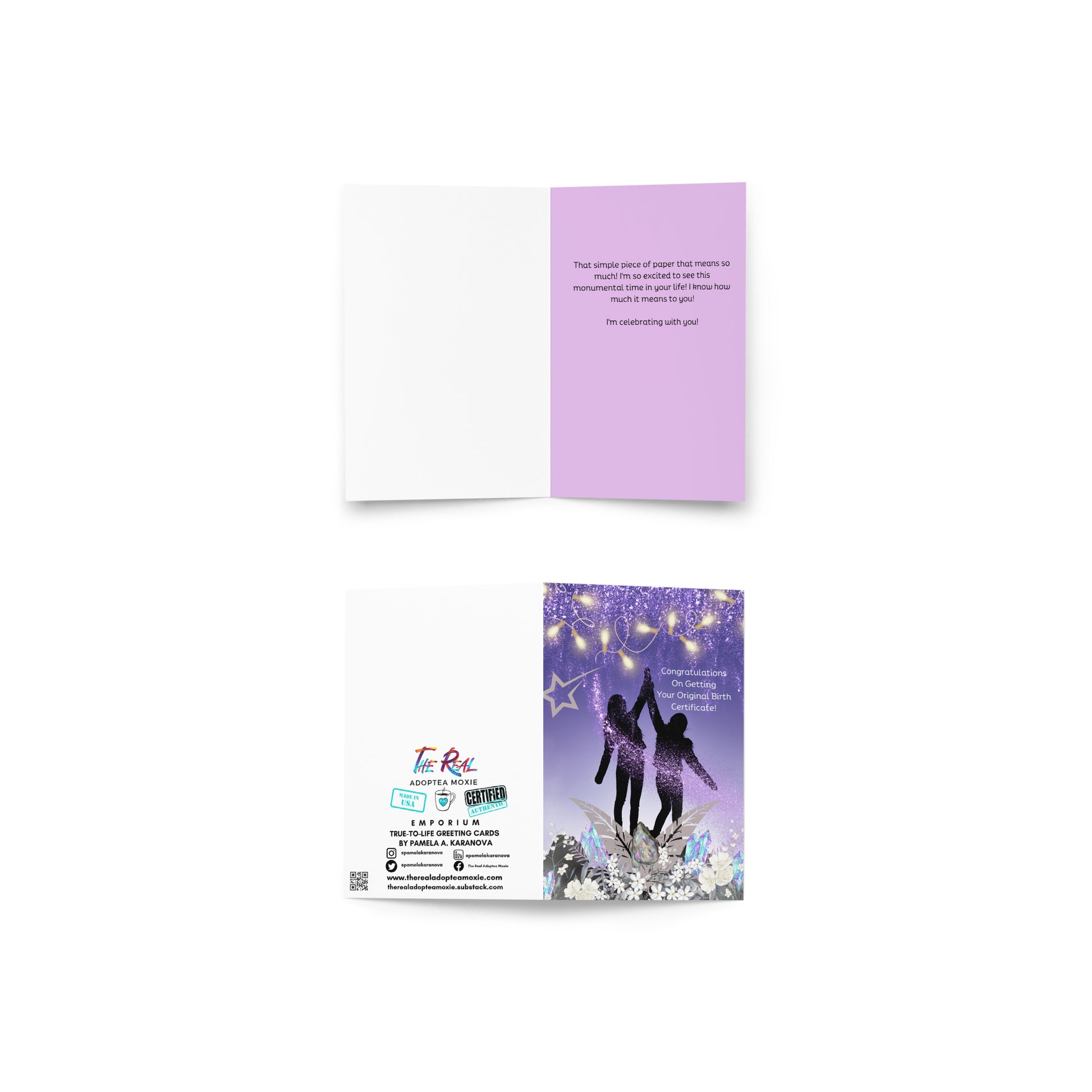 Front of Card: "Congratulations On Getting Your Original Birth Certificate!"