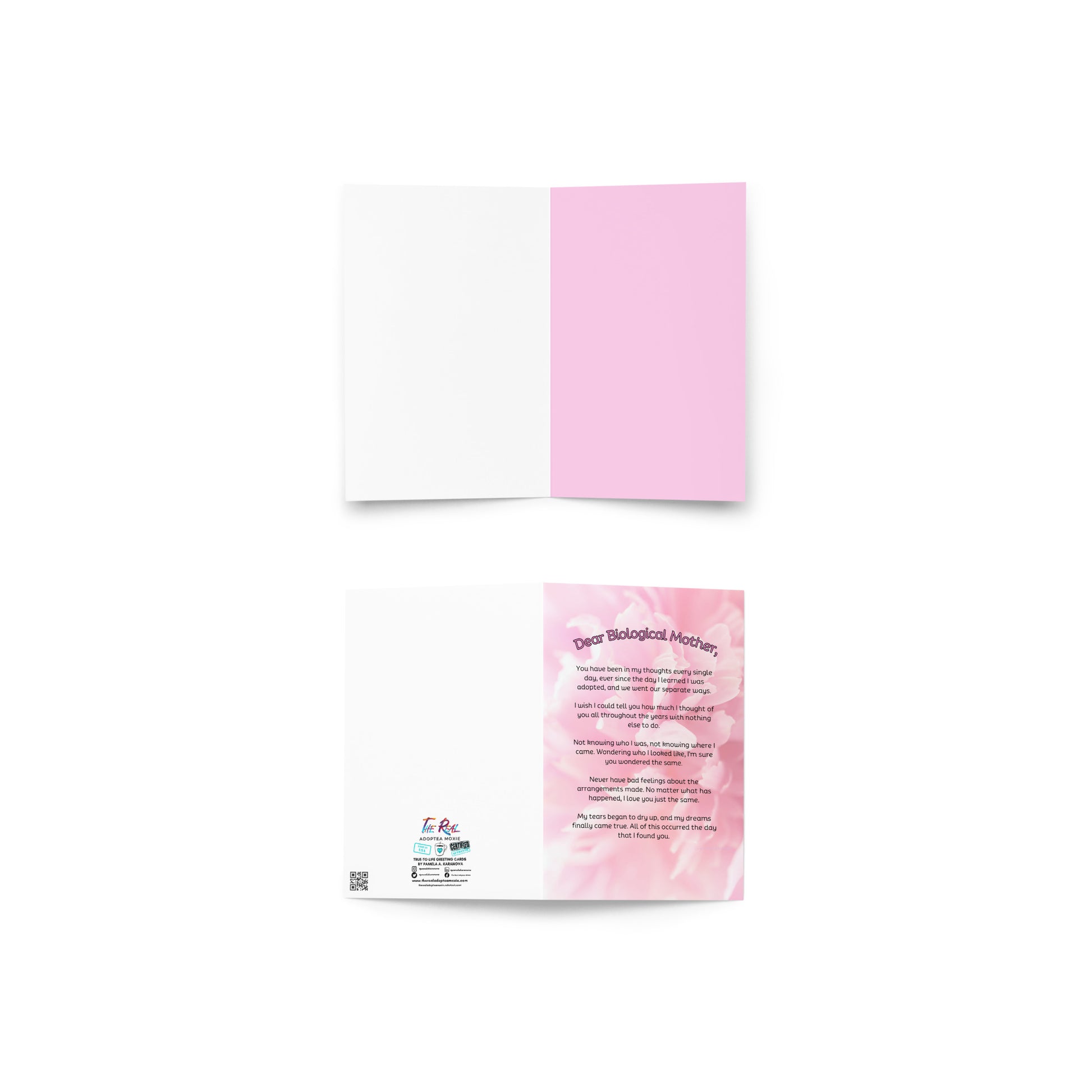 "Dear Biological Mother Poem" Adoptee Greeting Card: Each item becomes a bold and unique statement, and every true-to-life greeting card tells a story.