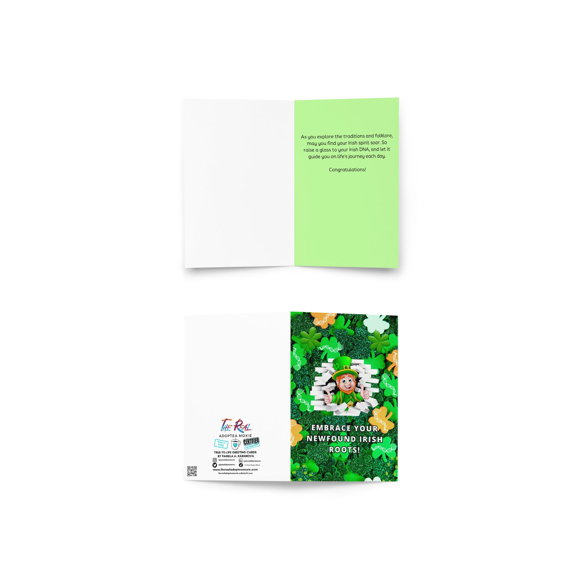 Front of Card: "Embrace Your Newfound Irish Roots"