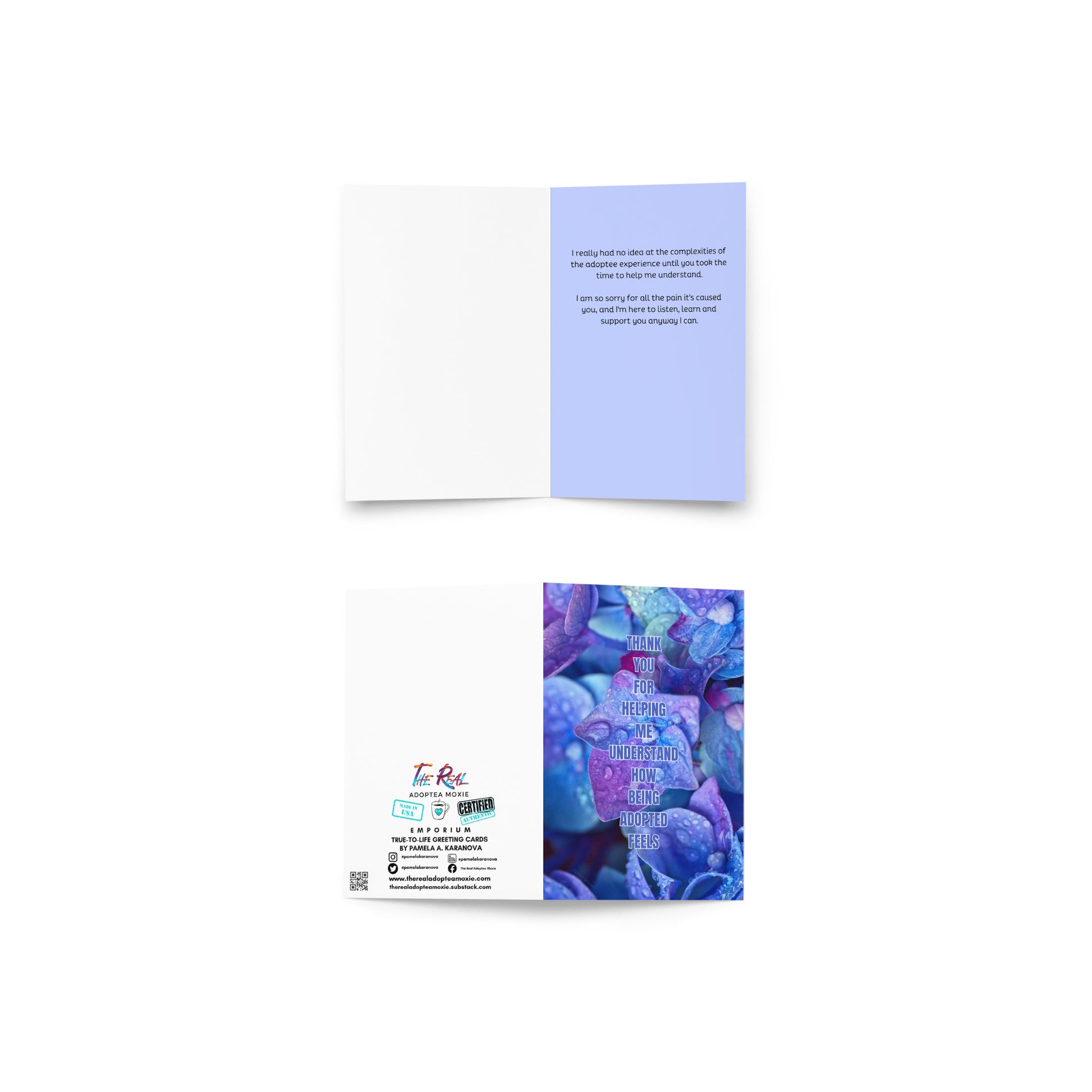 Inside Card: "I really had no idea of the adoptee experience until you took the time to help me understand. I am so sorry for all the pain it's caused you, and I'm here to listen, learn, and support you in any way I can."