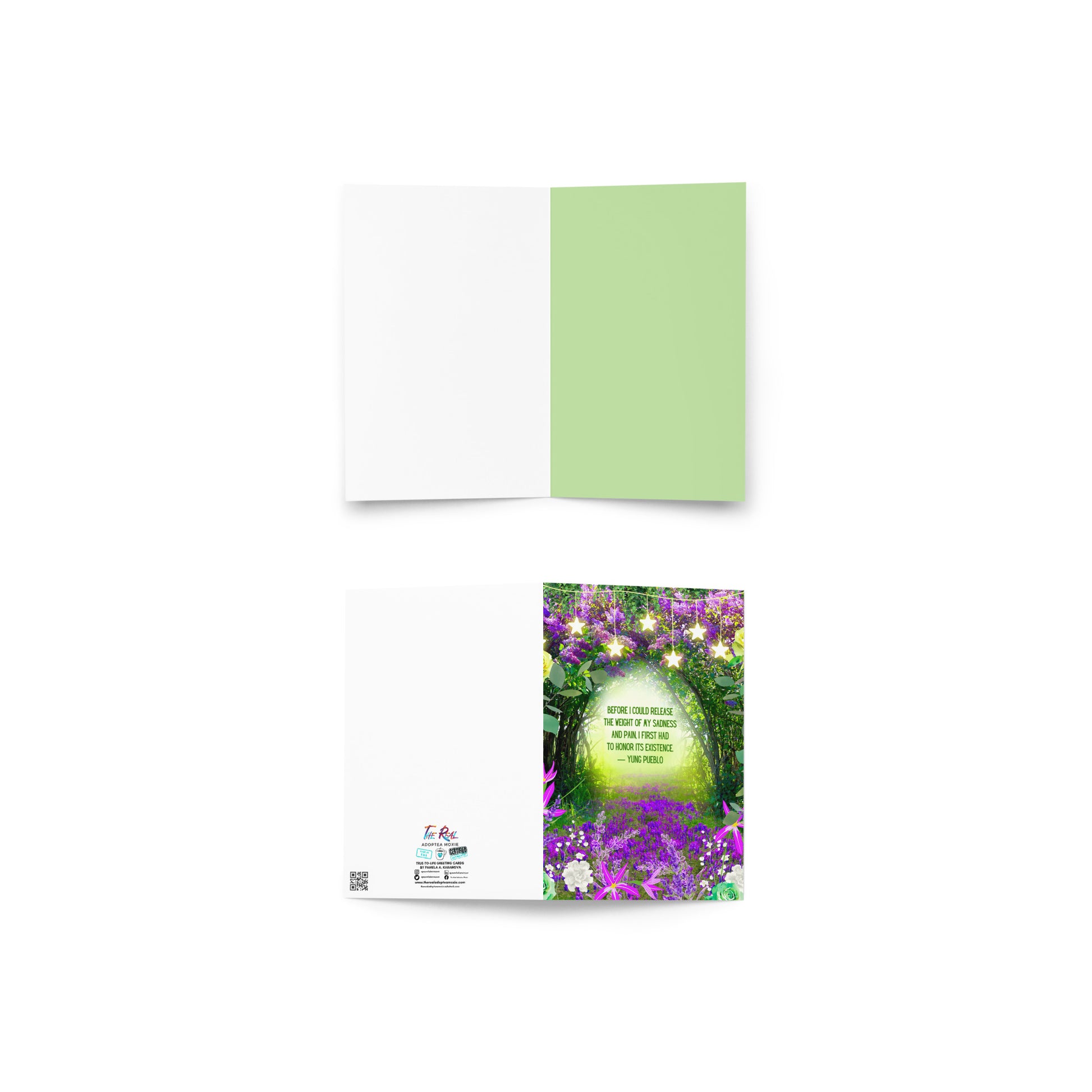 Front of Card: "Before I could release the weight of my sadness and pain, I first had to honor its existence. - Yung Pueblo"
