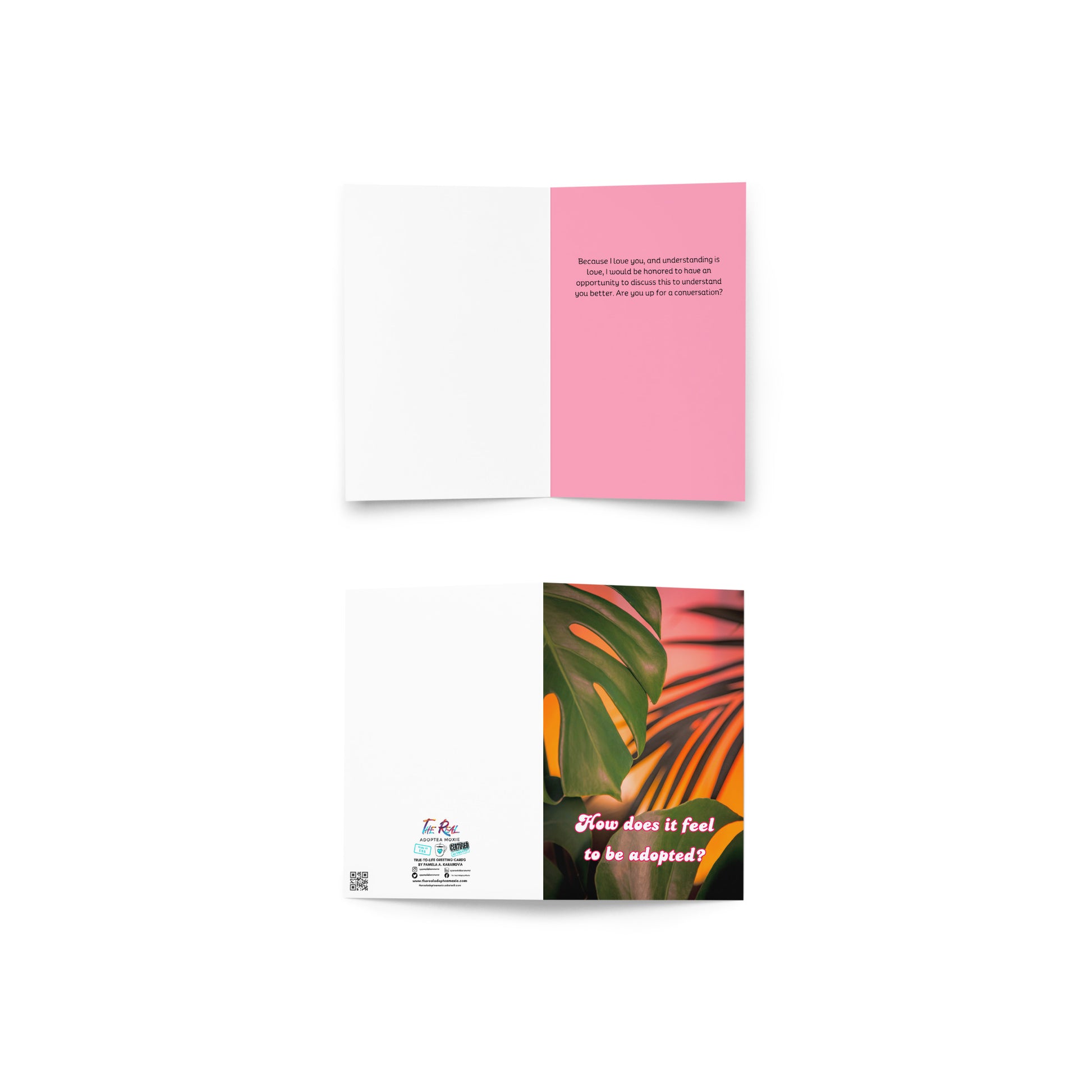 How Does It Feel To Be Adopted?" Adoptee Greeting Card: Each item becomes a bold and unique statement, and every true-to-life greeting card tells a story.