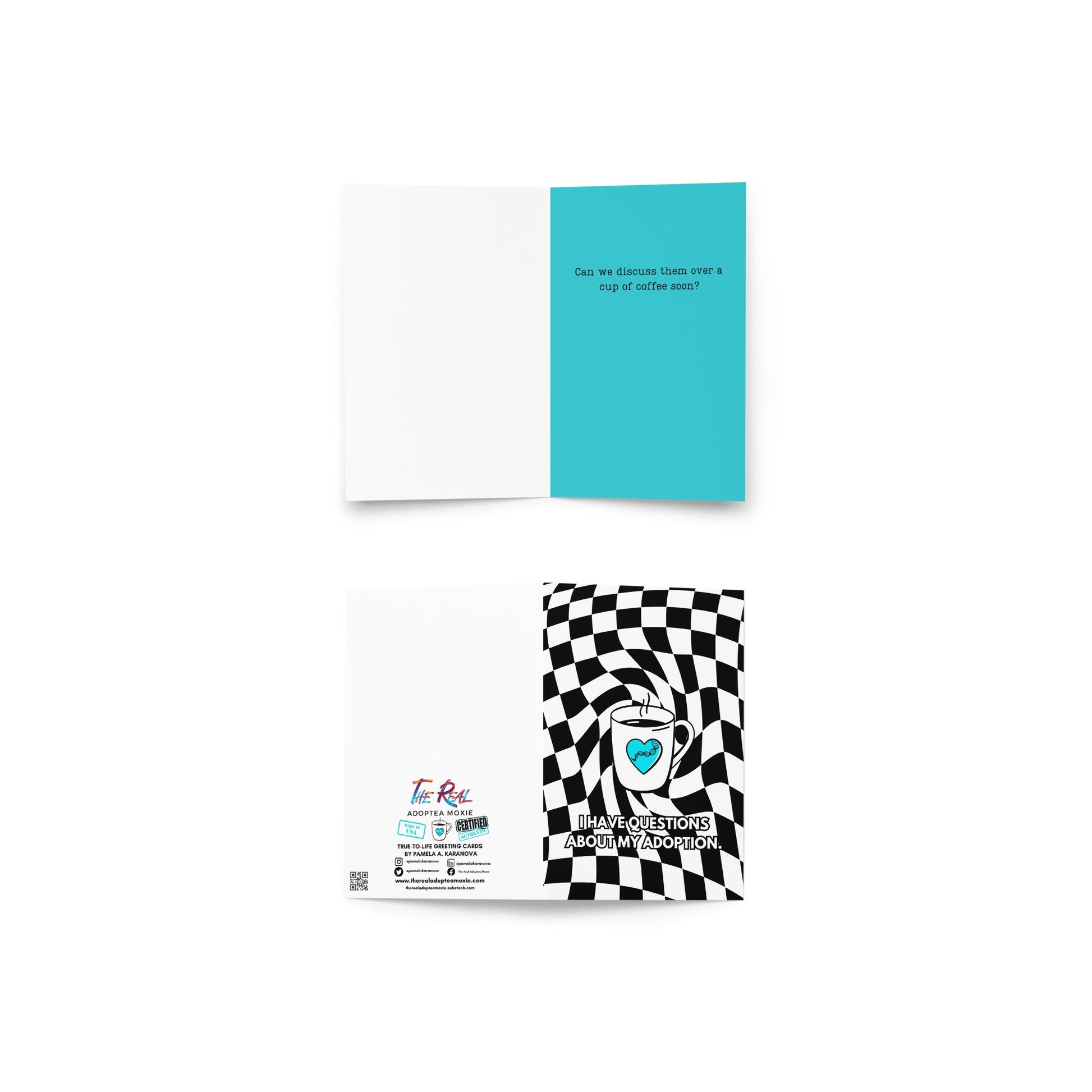 This card is sentimental for many reasons, especially for any adoptee who is hoping to have a heart-to-heart talk with someone they know and love over a cup of joe! If adoption is love, so is listening to adoptees and sharing our truth with us. Truth and transparency are critical to our healing process because we can't heal from secrecy, lies, and half-truths. Please help adoptees heal and share our truth in love. I hope you enjoy this card as much as I do, and I hope it sparks meaningful conversations.