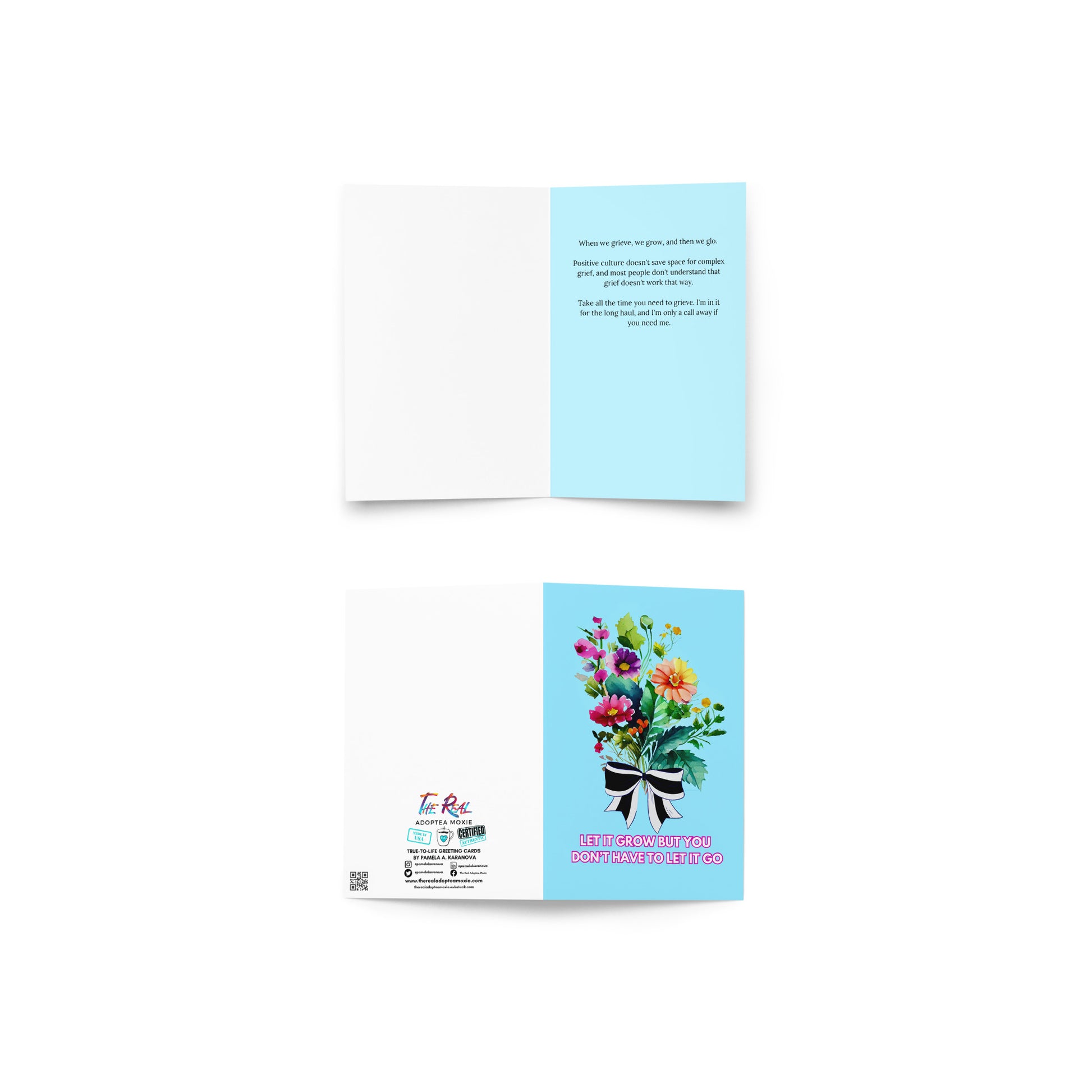 Inside Card: "When we grieve, we grow, and then we glo. Positive culture doesn't save space for complex grief, and most people don't understand that grief doesn't work that way. Take all the time you need to grieve. I'm in it for the long haul, and I'm only a call away if you need me."