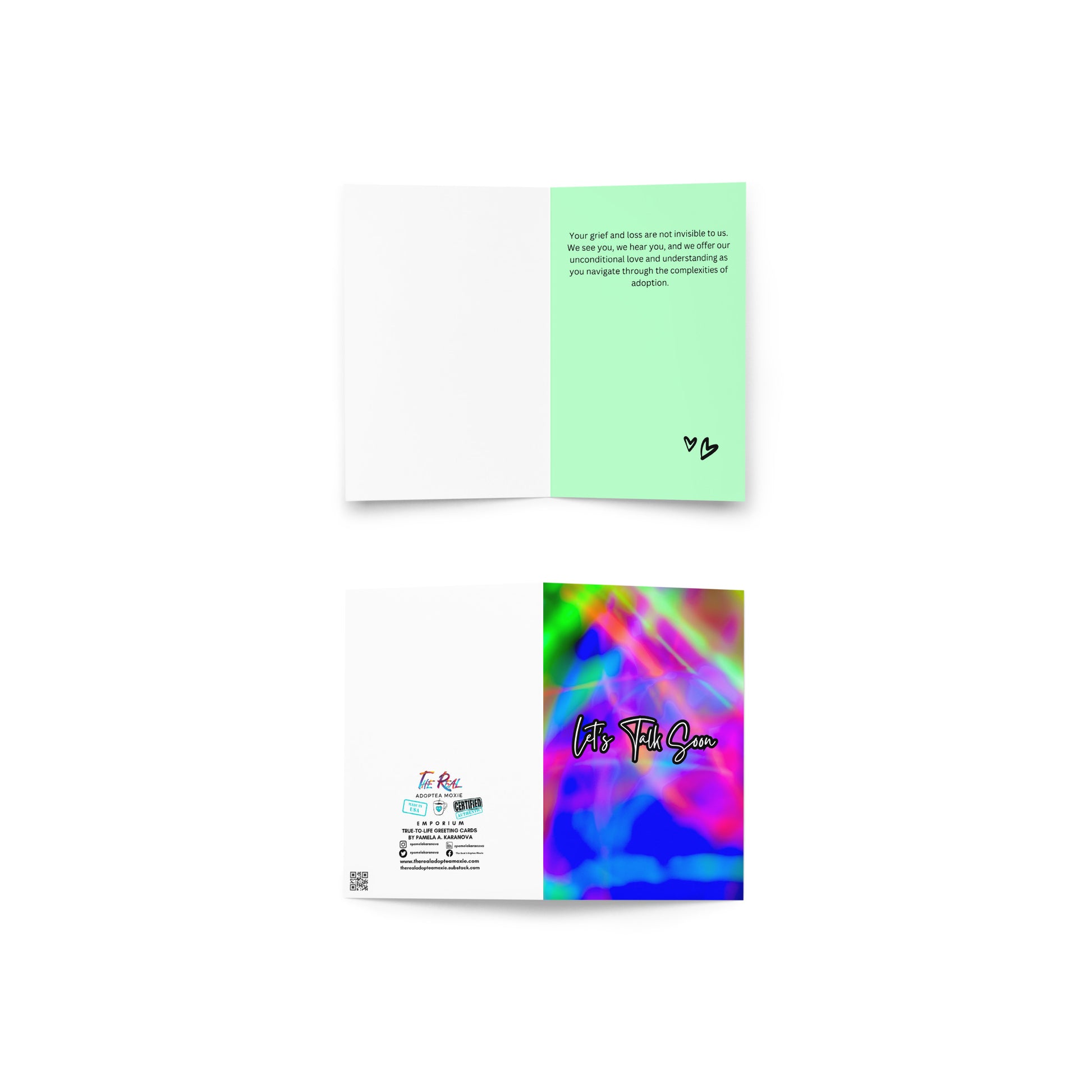 "Let's Talk Soon" Adoption Greeting Card: Each item becomes a bold and unique statement, and every true-to-life greeting card tells a story.