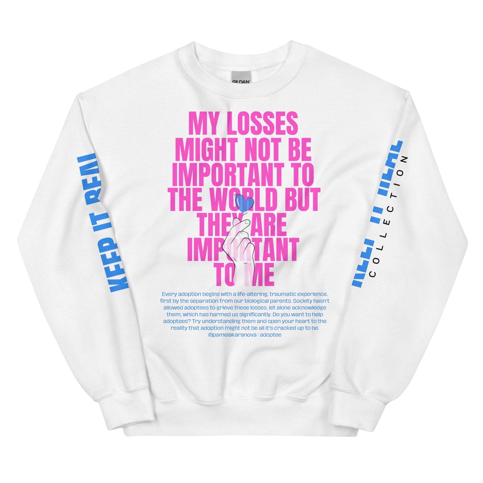 My Losses Keep It Real Lavish Bubblegum Pink and Kentucky Blue Unisex Sweatshirt