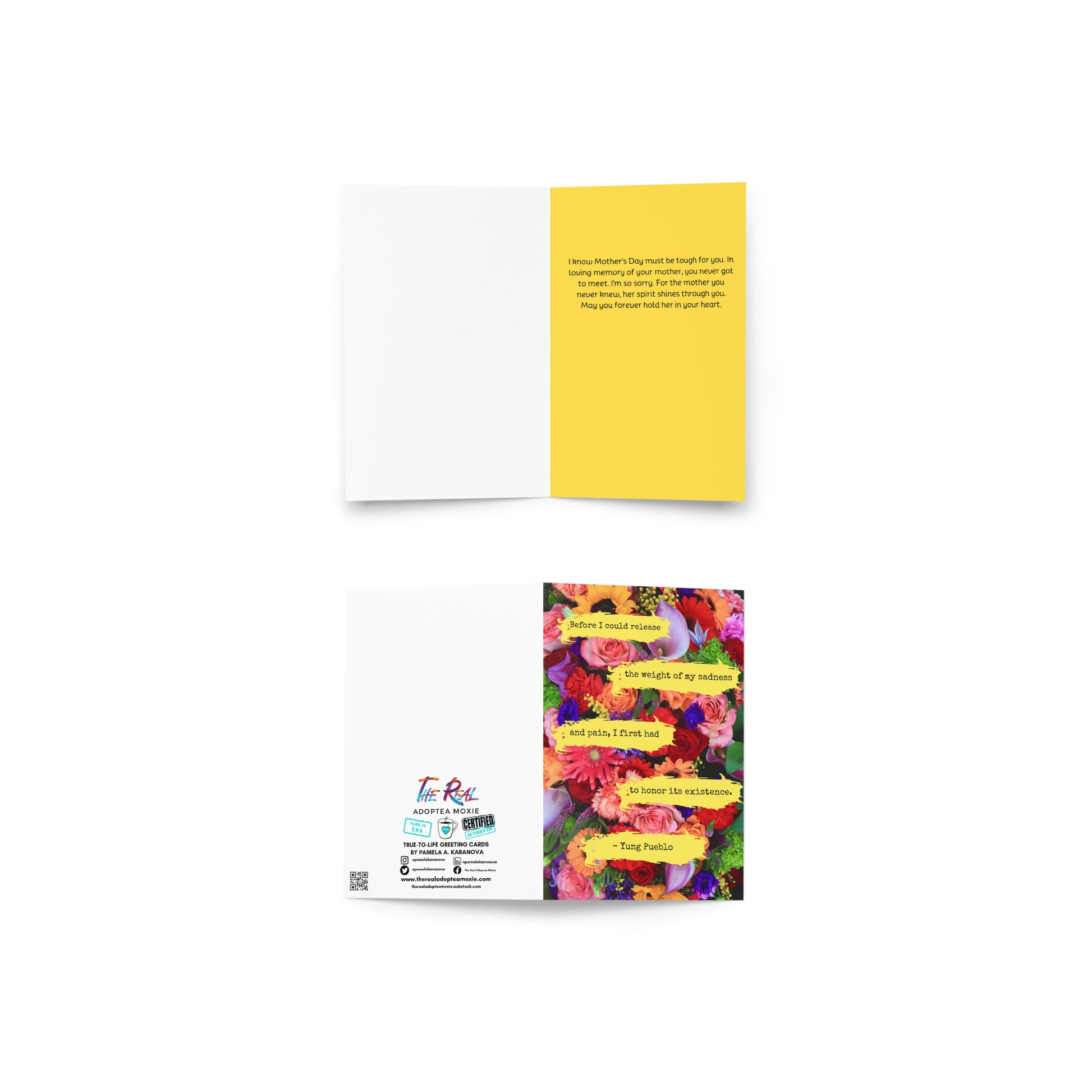 This greeting card speaks to many individuals in reference to our biological mothers for Mother's Day and acknowledges the reality that many of us never get to meet the woman who gave us life. Sometimes, they have passed away by the time we find them, and sometimes, they don't want to be found. It isn't easy to find the right greeting card that fits how we feel, and finding the right words to say is hard sometimes. This card is a great addition to the honor of the very difficult day we call Mother's Day.