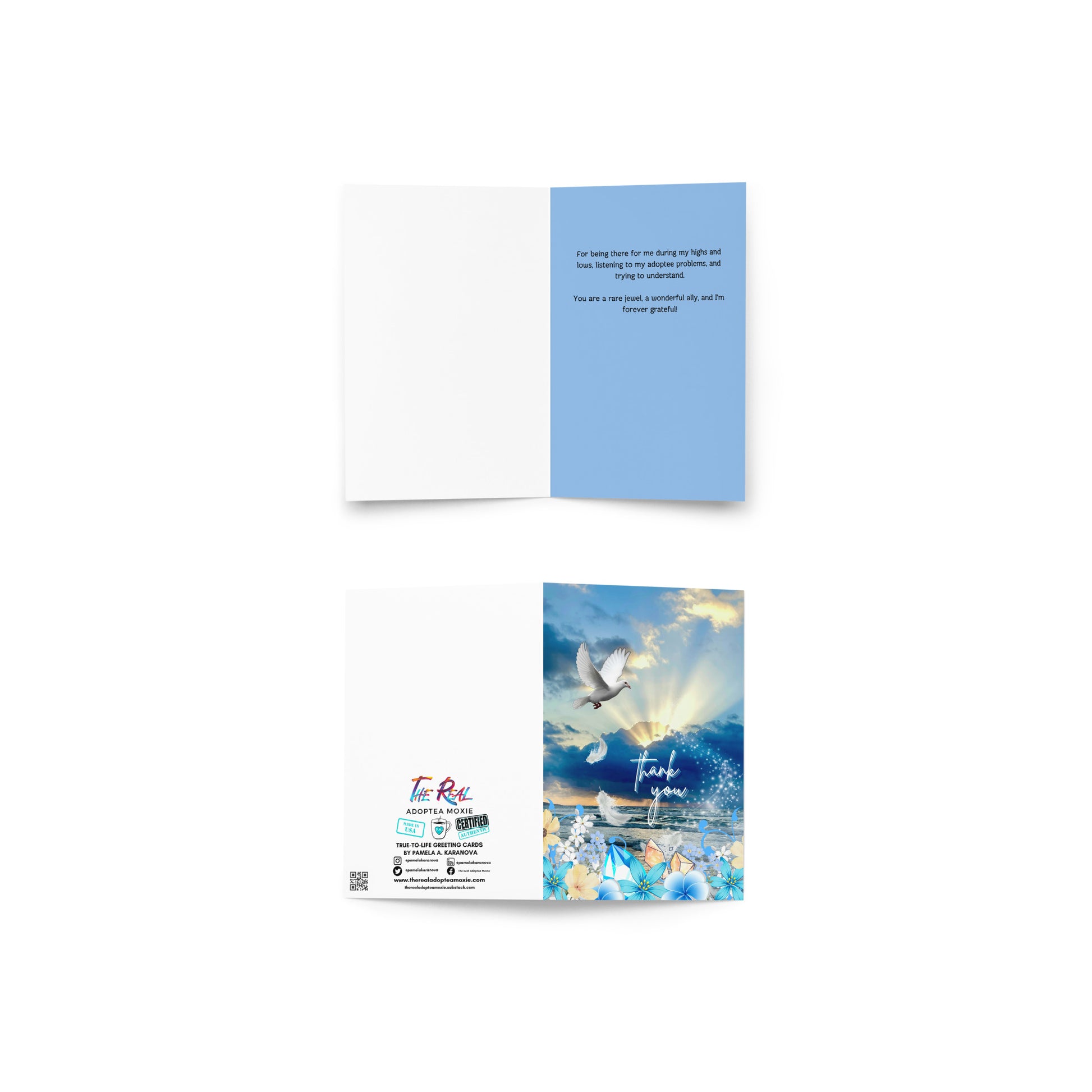 Inside Card: "For being there for me during my highs and lows, listening to my adoptee problems, and trying to understand. You are a rare jewel, a wonderful ally, and I'm forever grateful."