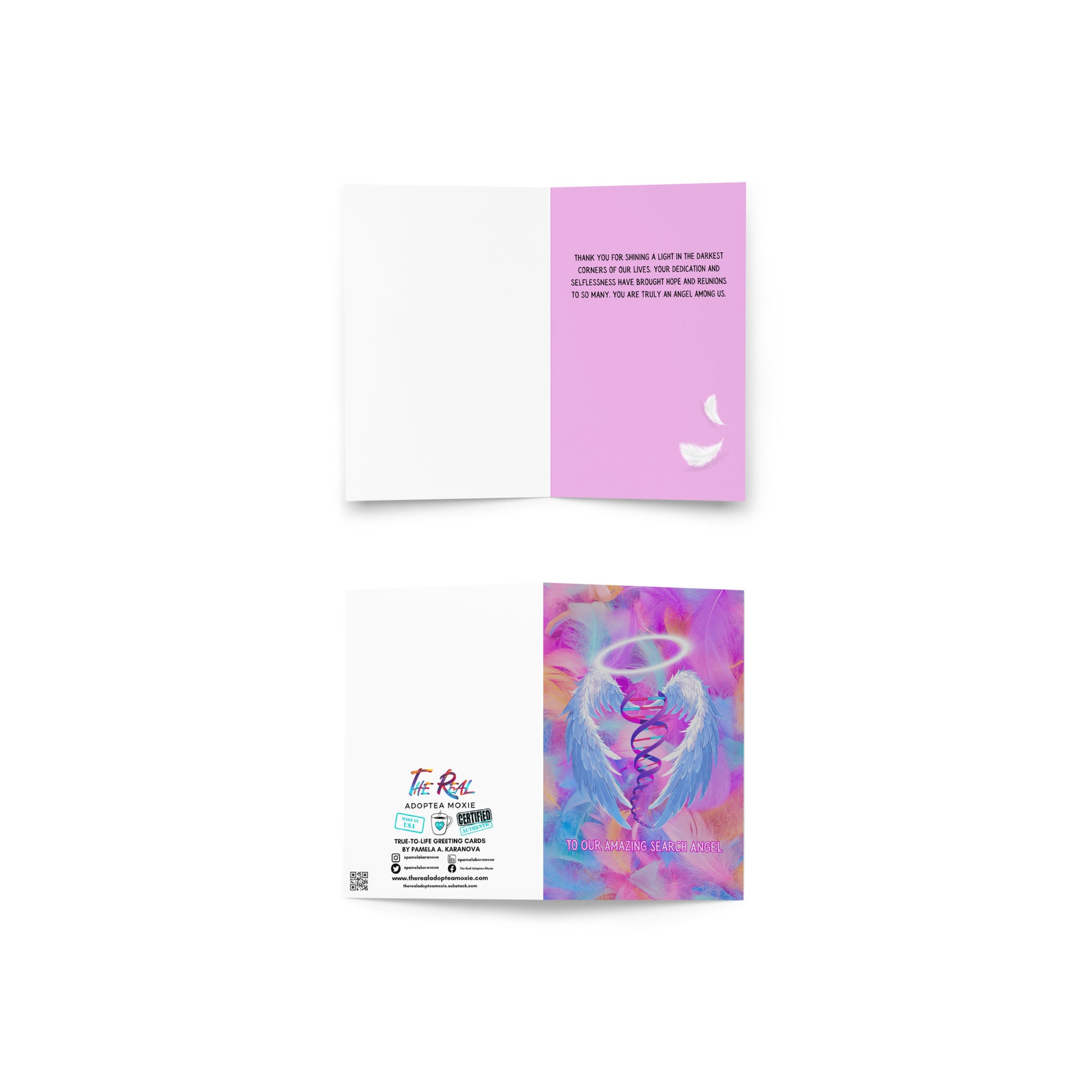 "To Our Amazing Search Angel" Greeting Card: Each item becomes a bold and unique statement, and every true-to-life greeting card tells a story.